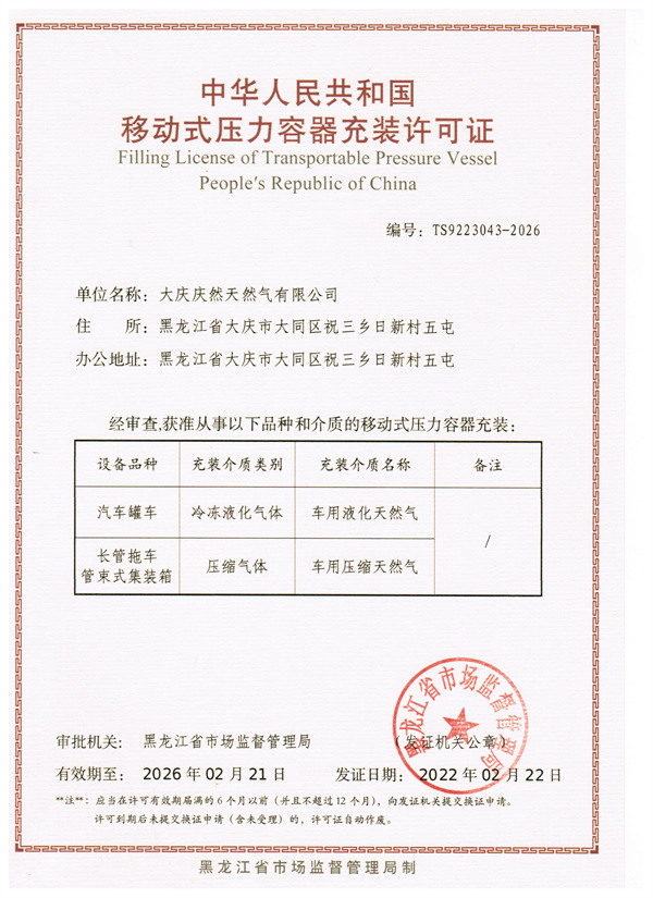 • 移動式壓力容器充裝許可證